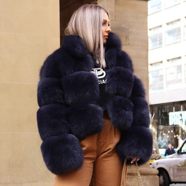 Natural Short Real Fox Fur Coat For Women With Stand Collar Thick Warm Winter Genuine Fox Fur Jacket High Quality Fur Overcoats