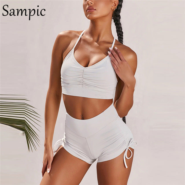 Sampic Outfits Femme Clothing White Sport Skinny Tracksuit Summer Women Casual Sexy Crop Tops And Biker Shorts Two Piece Set